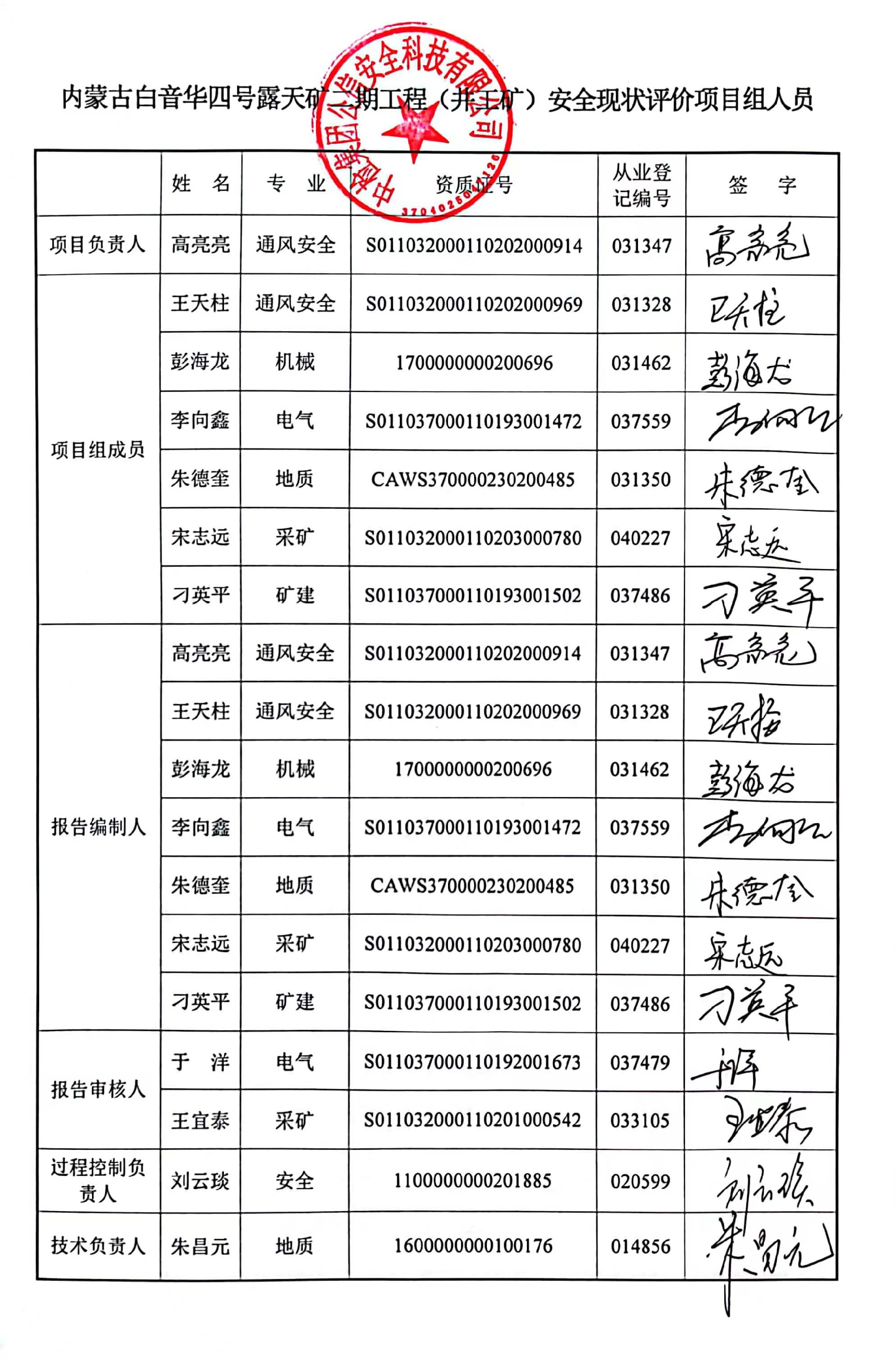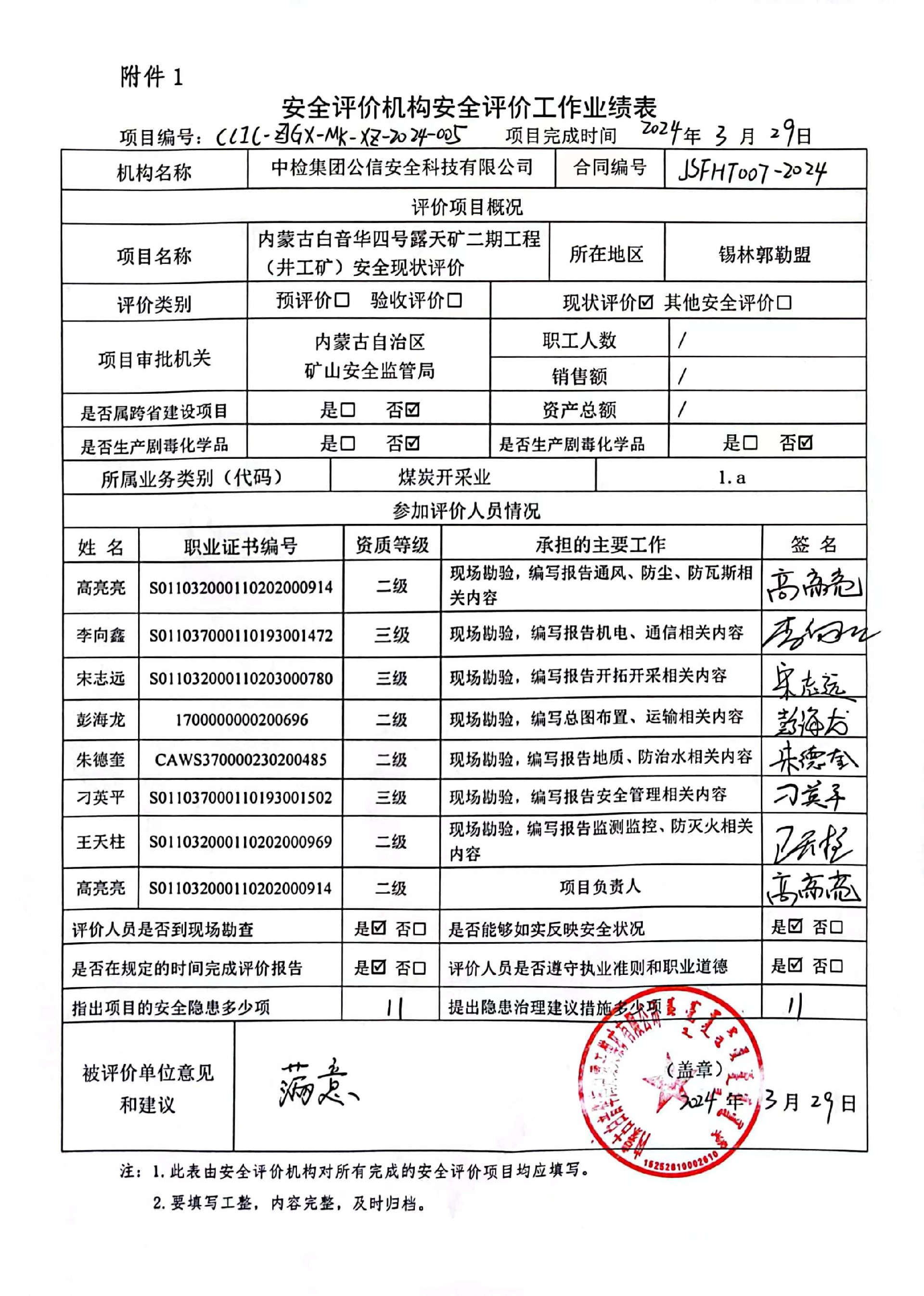 評價項目名稱 | 內(nèi)蒙古白音華四號露天礦二期工程(井工礦)安全現(xiàn)狀評價 | |||||