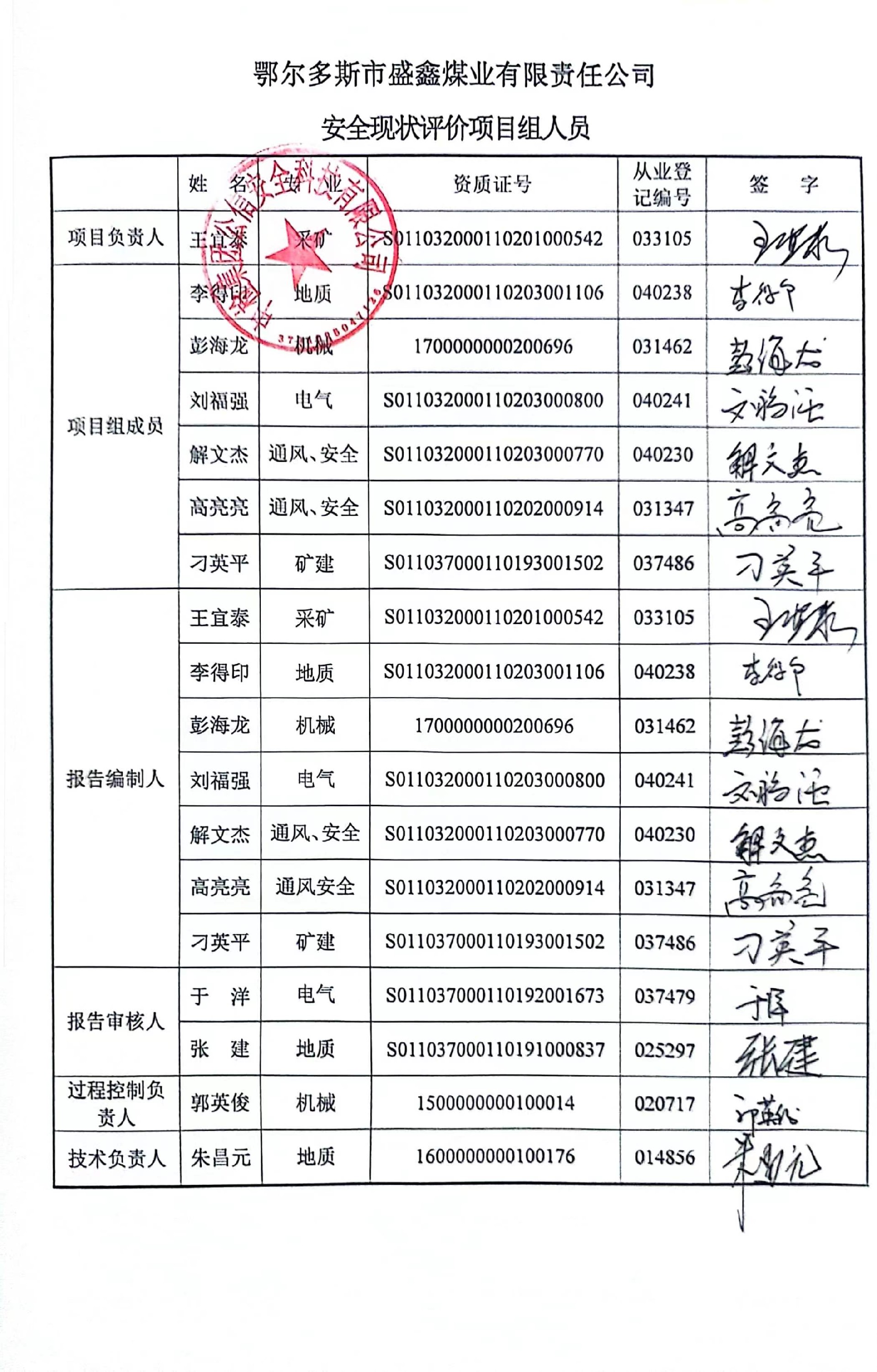 評價項目名稱 | 鄂爾多斯市盛鑫煤業(yè)有限責(zé)任公司安全現(xiàn)狀評價報告 | ||||||