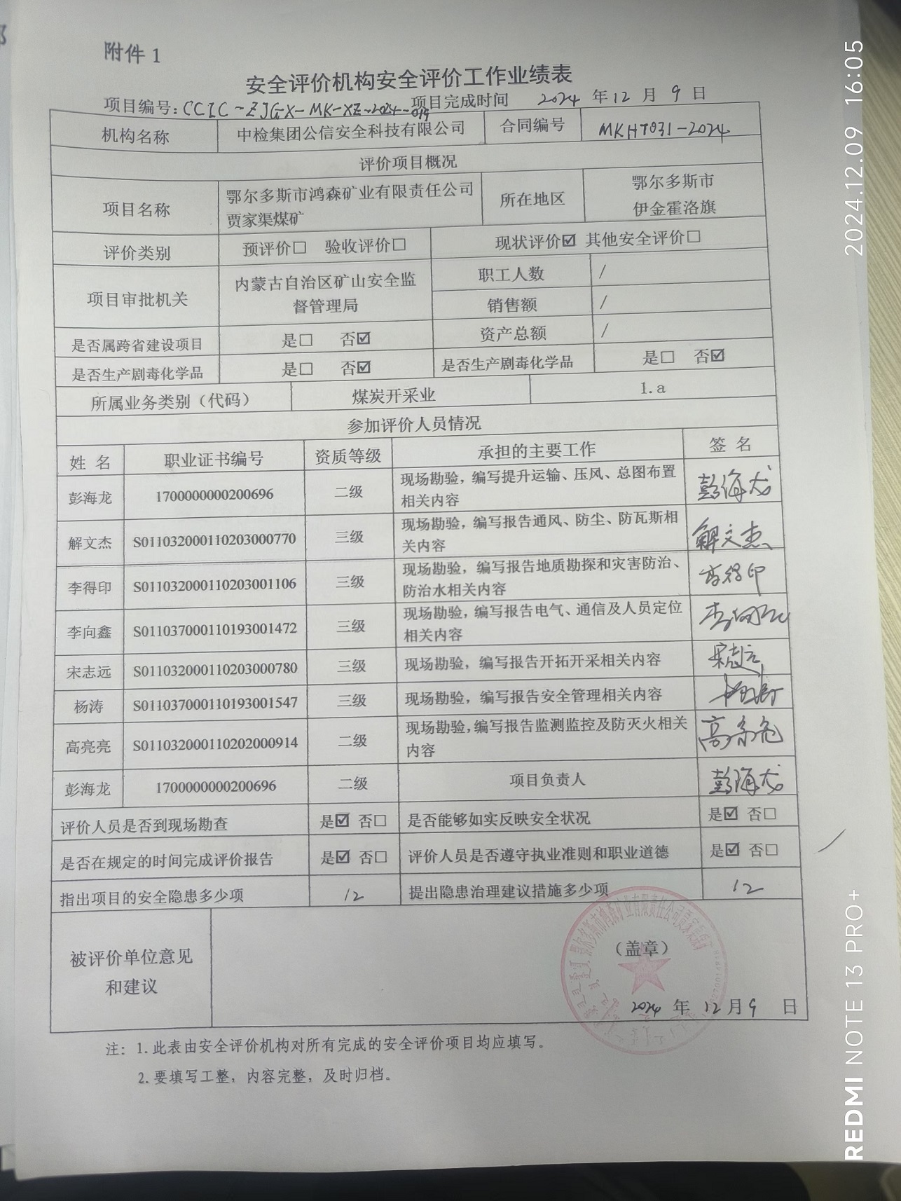 評(píng)價(jià)項(xiàng)目名稱 | 鄂爾多斯市鴻森礦業(yè)有限責(zé)任公司賈家渠煤礦安全現(xiàn)狀評(píng)價(jià)報(bào)告 | ||||||