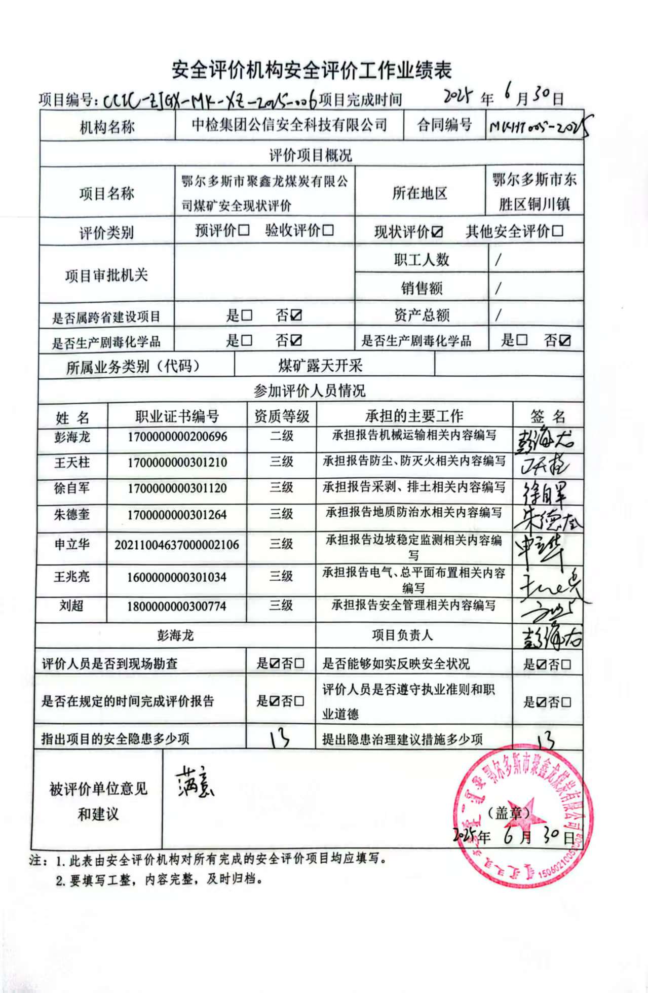 評(píng)價(jià)項(xiàng)目名稱 | 鄂爾多斯市聚鑫龍煤炭有限公司煤礦安全現(xiàn)狀評(píng)價(jià) | ||||||