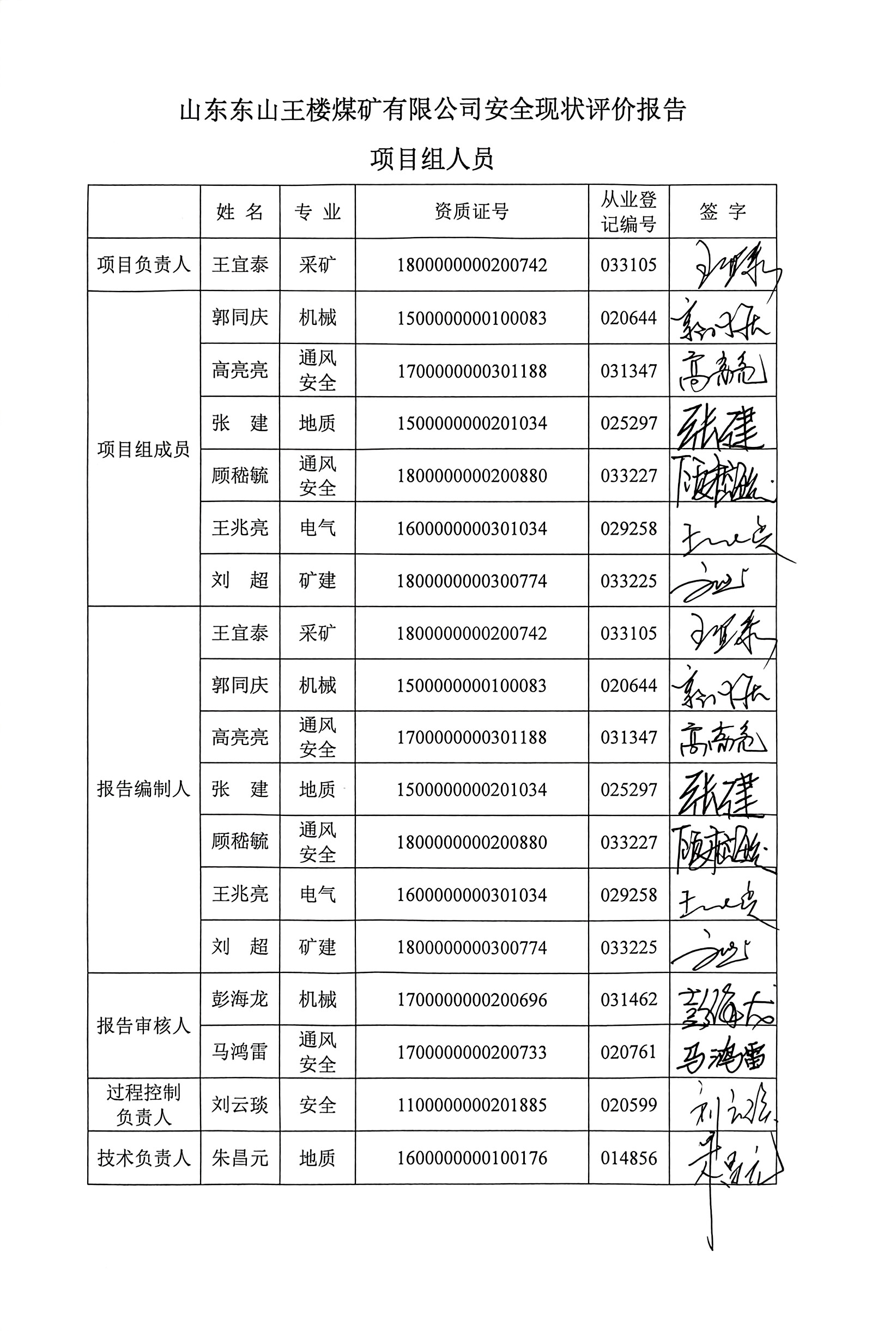 參與安全評(píng)價(jià)工作的注冊(cè)安全工程師: 王宜泰、郭同慶、高亮亮、張建、顧嵇毓、王兆亮 | ||||||