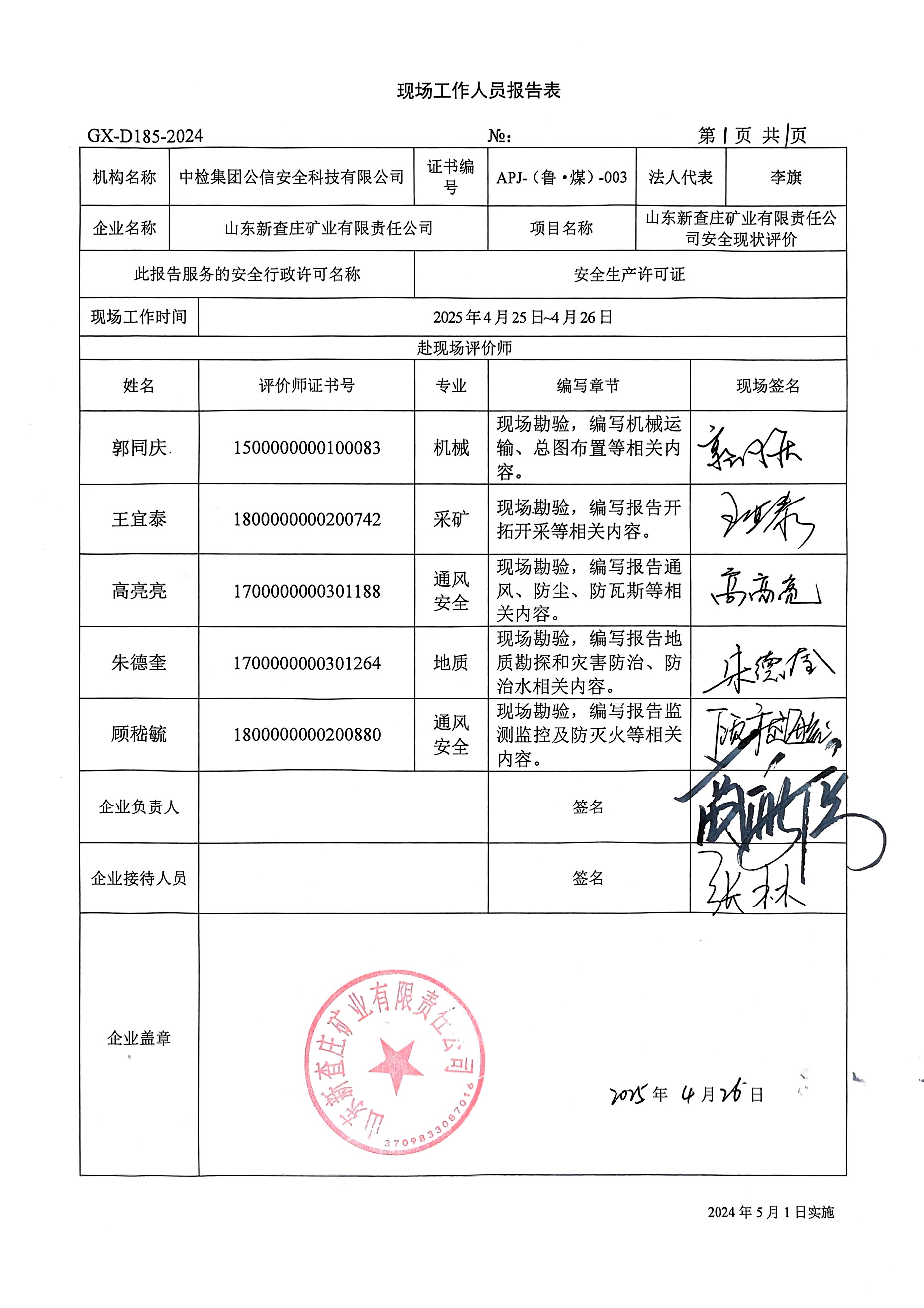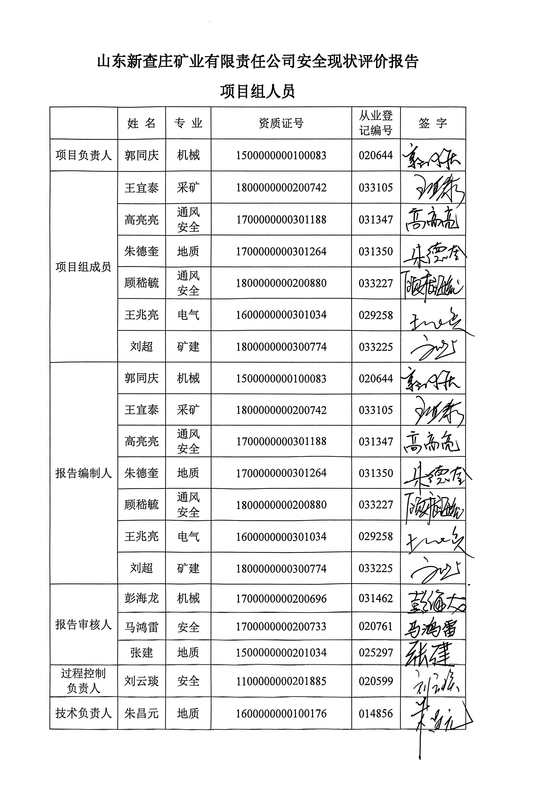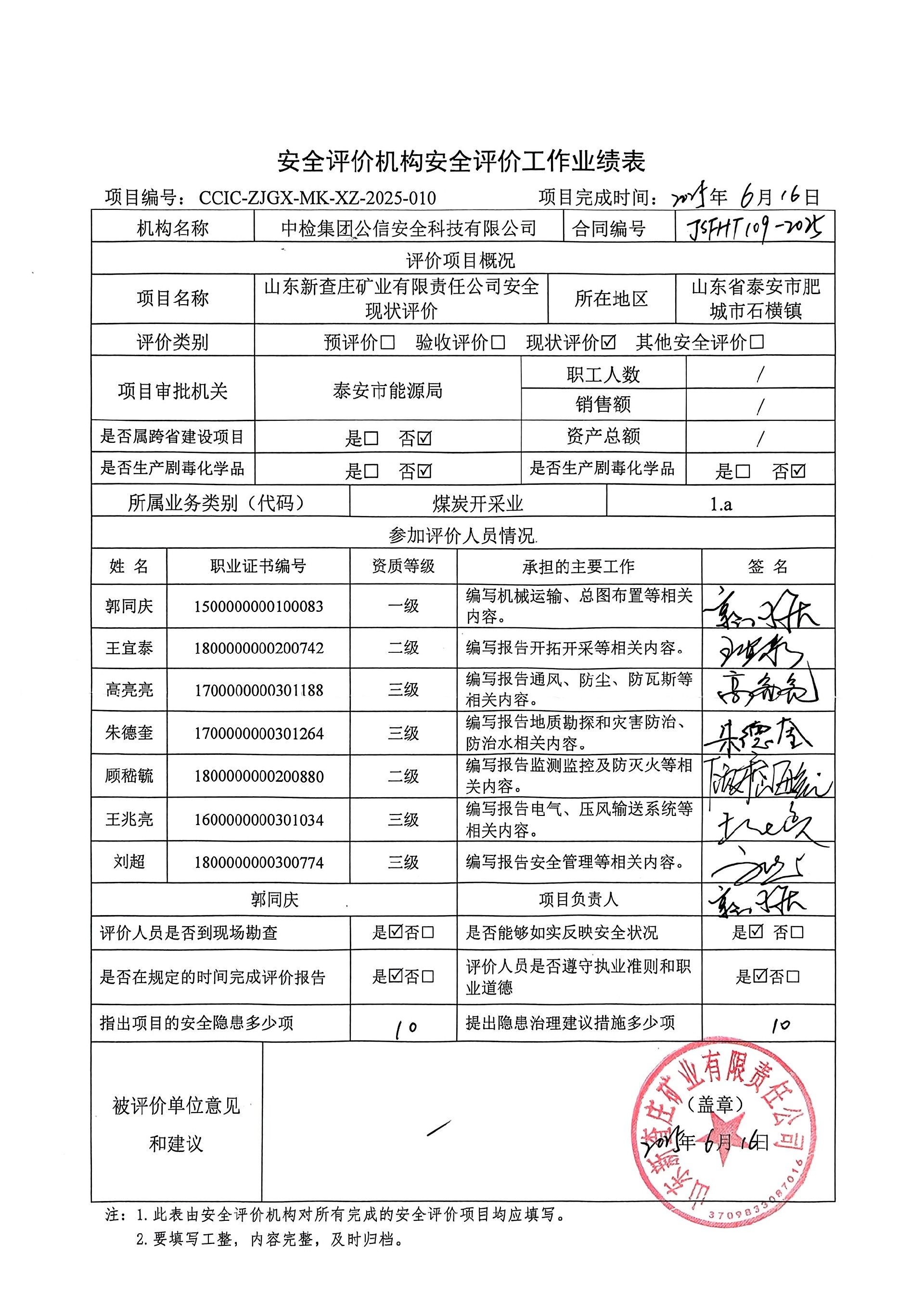 評價項目名稱 | 山東新查莊礦業(yè)有限責任公司安全現(xiàn)狀評價報告 | |||||