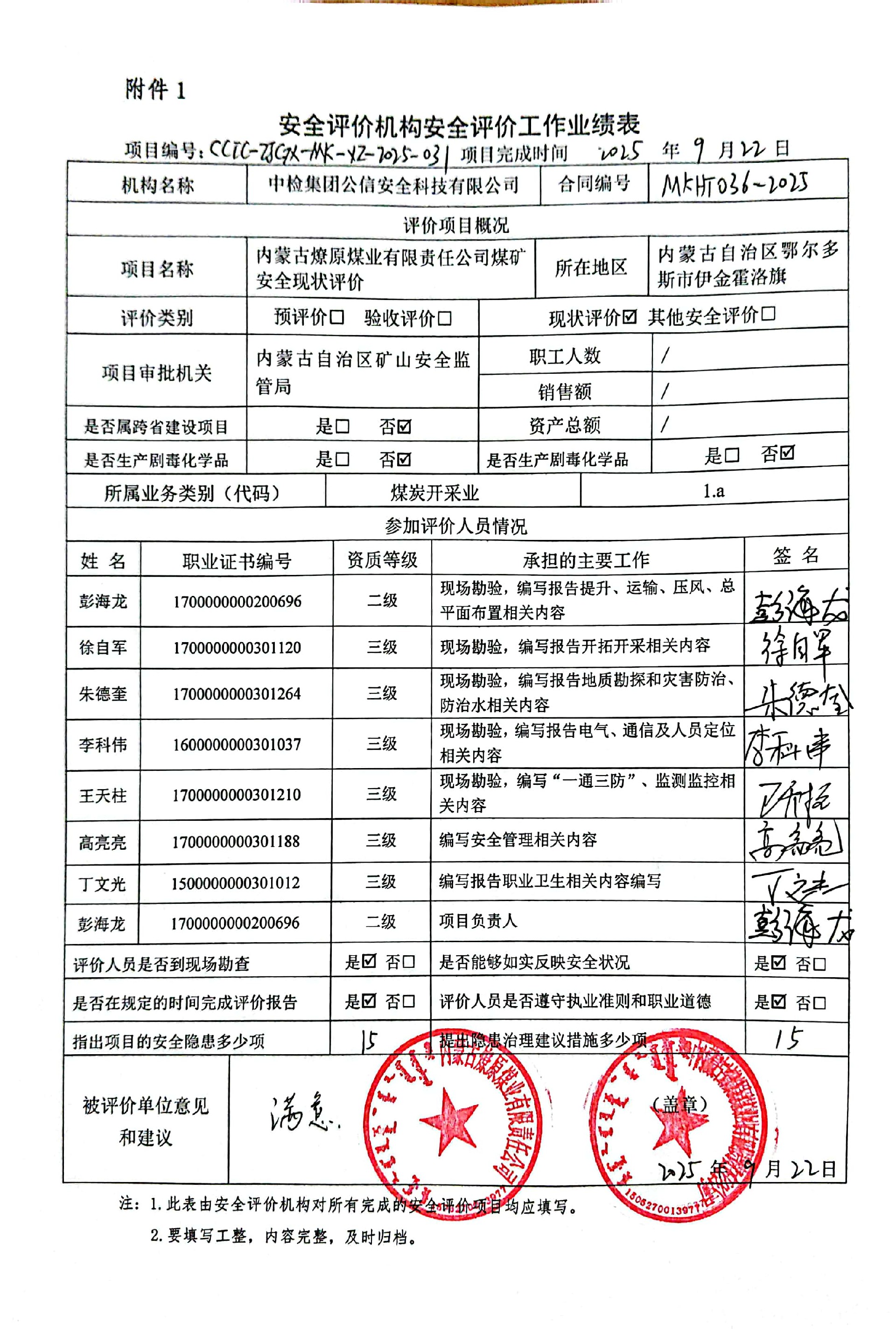 評(píng)價(jià)項(xiàng)目名稱 | 內(nèi)蒙古燎原煤業(yè)有限責(zé)任公司煤礦安全現(xiàn)狀評(píng)價(jià)報(bào)告 | ||||||