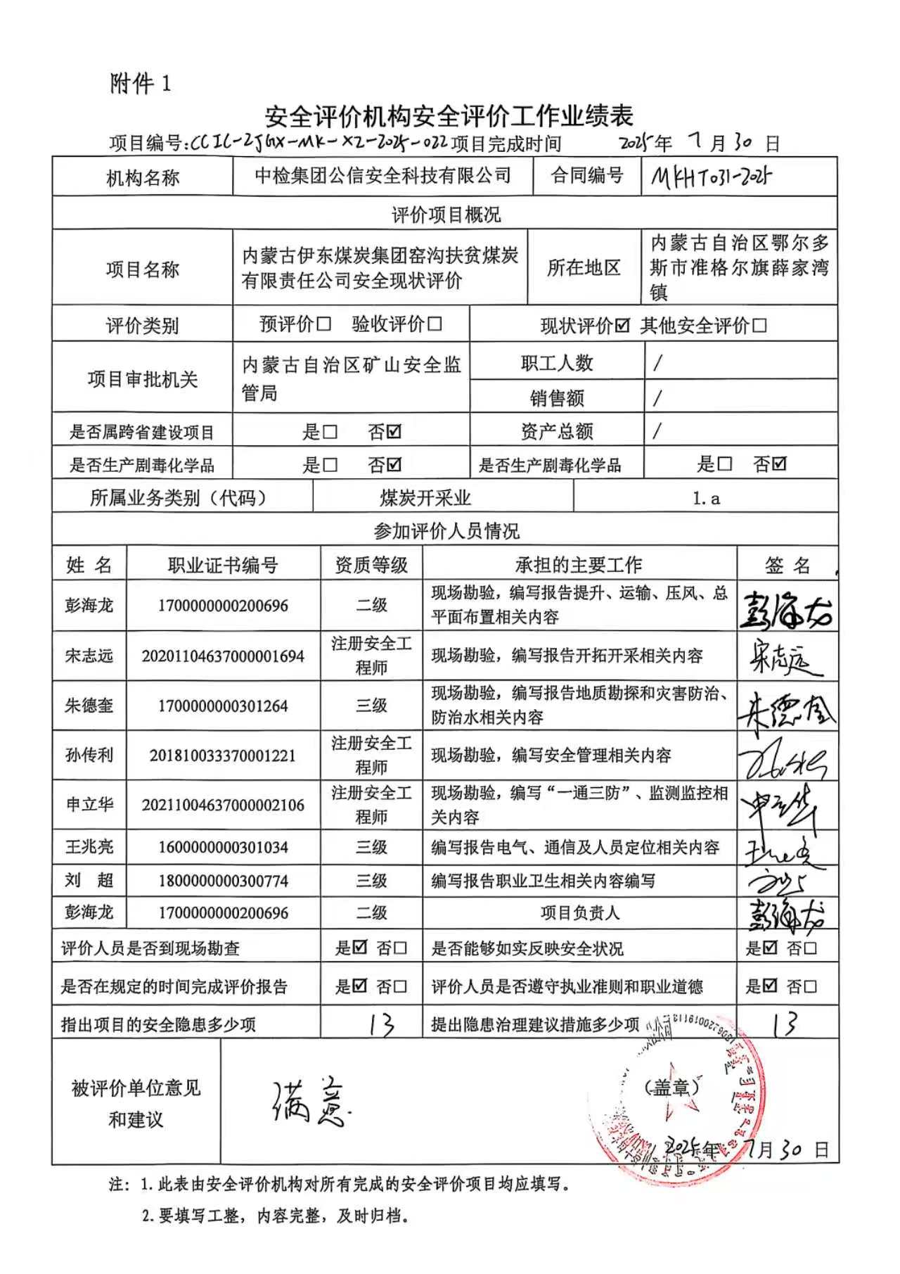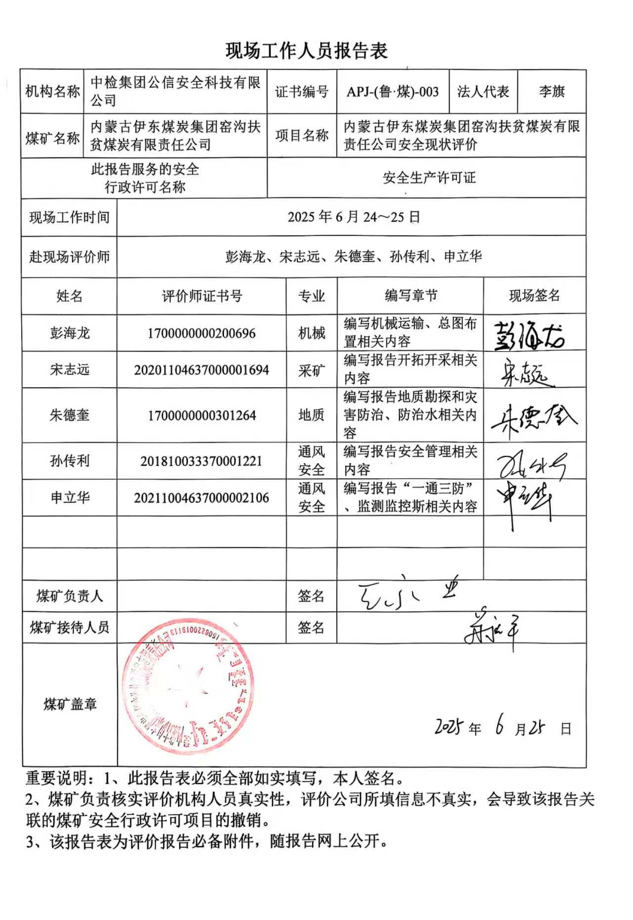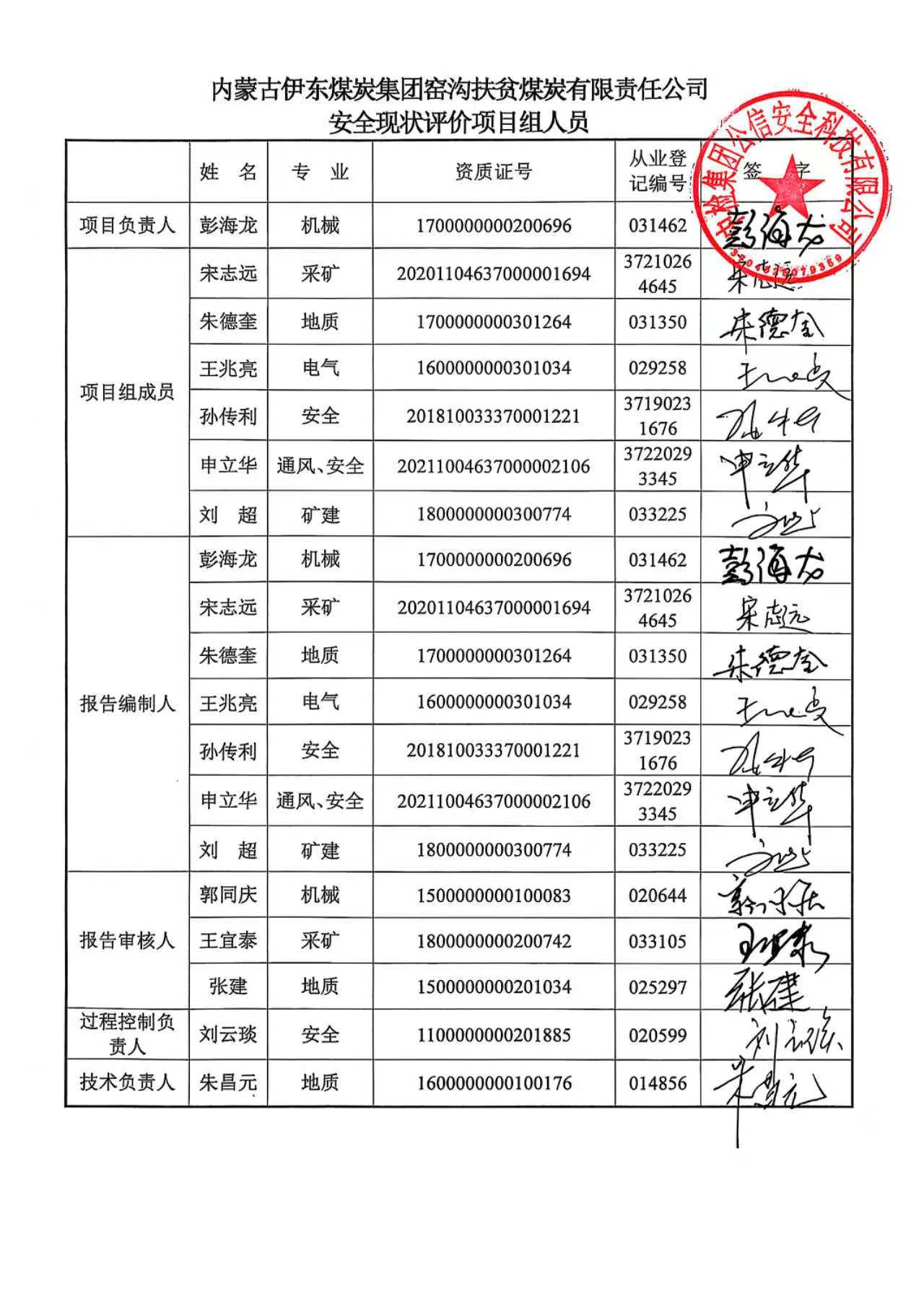 內(nèi)蒙古伊東煤炭集團窯溝扶貧煤炭有限責(zé)任公司安全現(xiàn)狀評價報告