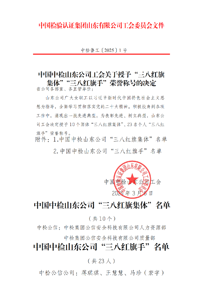 喜報!中檢公信人力資源部等部門榮獲“三八紅旗集體”稱號