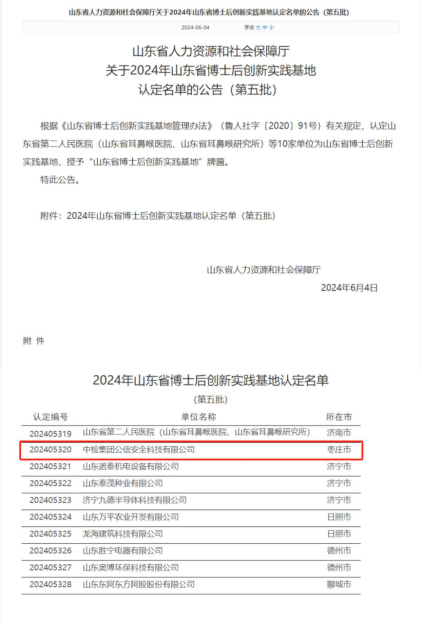 2024年6月4日,山東省人力資源和社會保障廳公布了關(guān)于山東省博士后創(chuàng)新實(shí)踐基地認(rèn)定名單的公告(第五批),中檢集團(tuán)公信安全科技有限公司成功通過認(rèn)定。博士后創(chuàng)新實(shí)踐基地,是企業(yè)引進(jìn)和培養(yǎng)人···