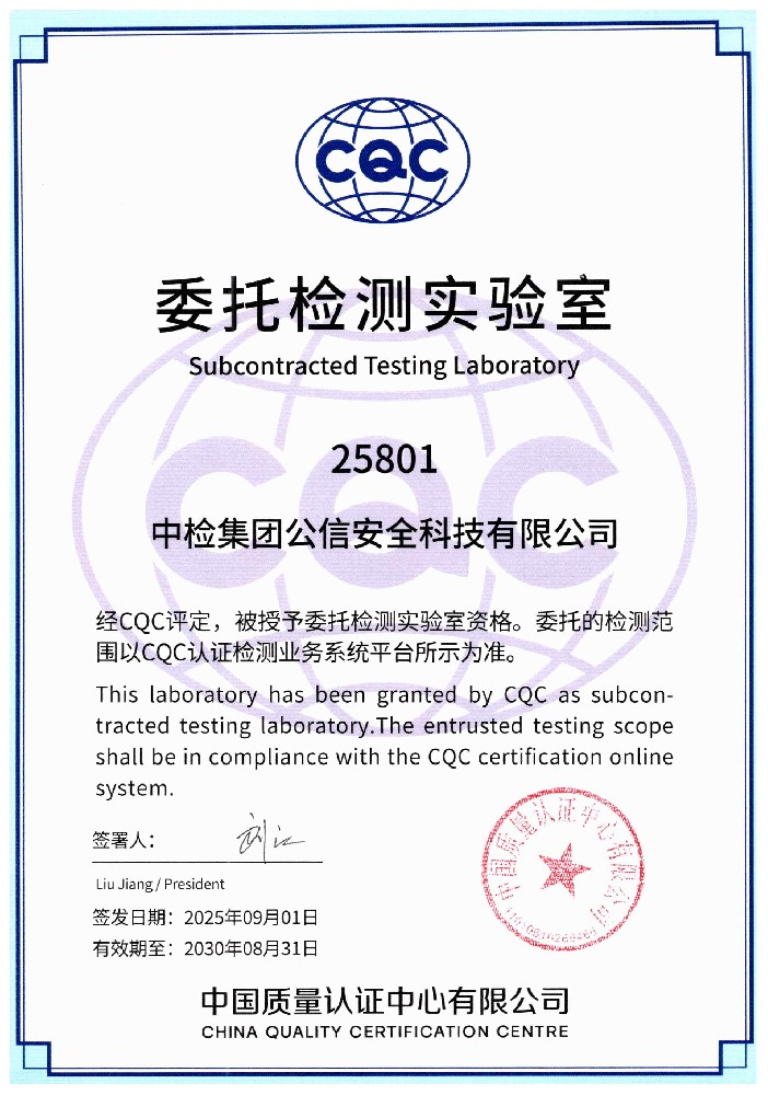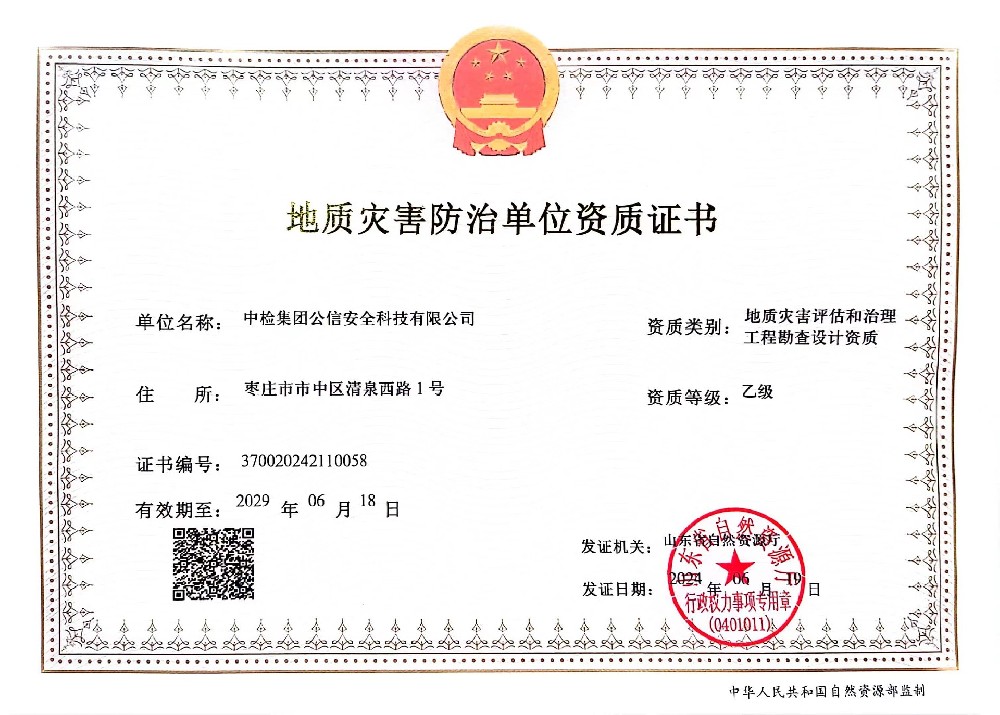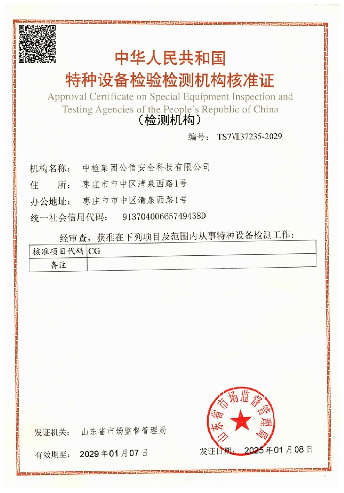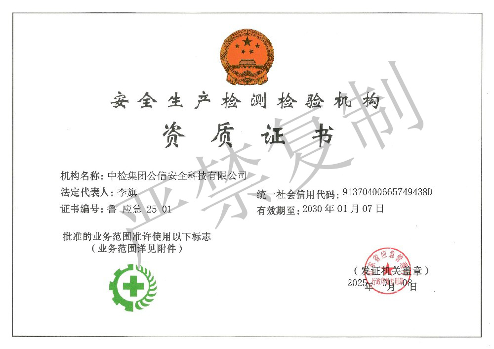 機(jī)構(gòu)名稱:中檢集團(tuán)公信安全科技有限公司證書編號(hào):魯 應(yīng)急 25 01有效期至:2030年01月07日