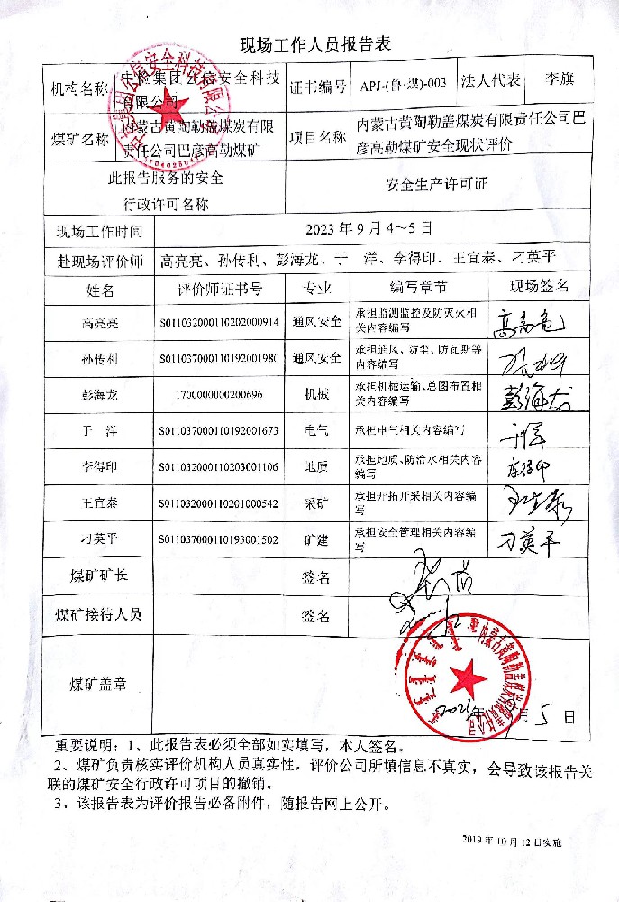 4.2內(nèi)蒙古黃陶勒蓋煤炭有限責任公司巴彥高勒煤礦安全現(xiàn)狀評價