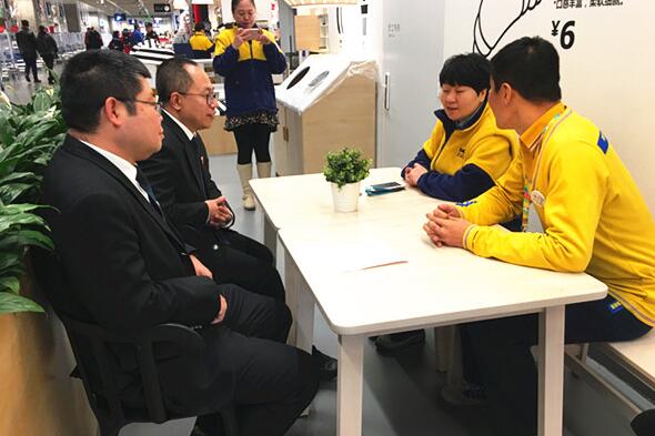 近日,沈陽(yáng)市鐵西區(qū)人民法院民一庭庭長(zhǎng)陳言、副庭長(zhǎng)喜延峰帶隊(duì)到宜家沈陽(yáng)商場(chǎng)進(jìn)行走訪調(diào)研,就食品安全和消費(fèi)者權(quán)益保護(hù)等相關(guān)問(wèn)題與商場(chǎng)負(fù)責(zé)人進(jìn)行座談。