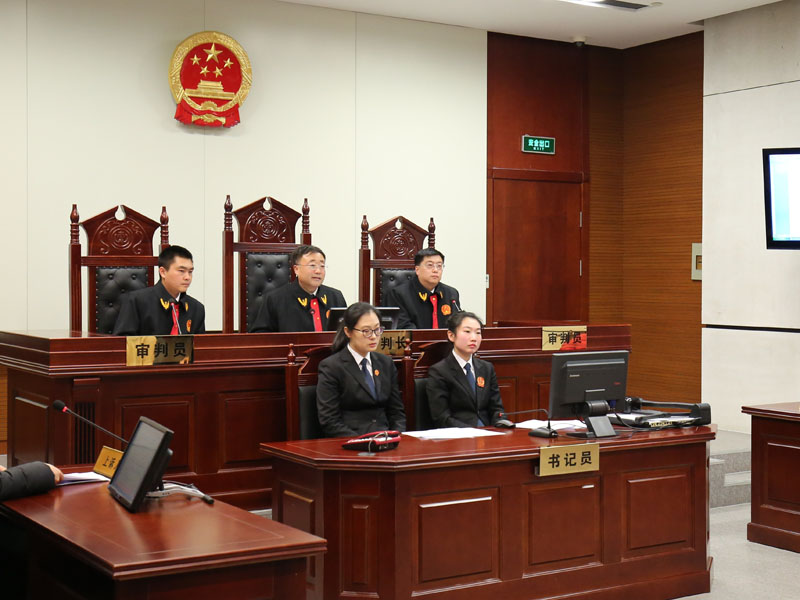 本溪中院院長(zhǎng)姜鳳武(后排中)公開審理案件并在網(wǎng)上同步直播