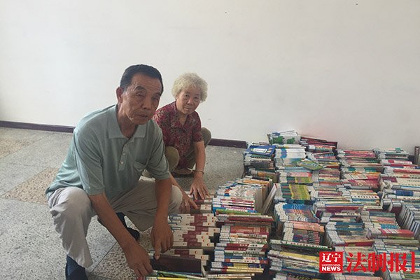 韓昭義夫婦整理圖書