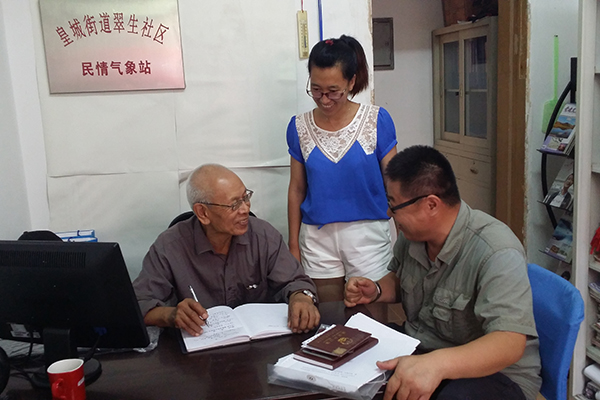 戴威今年已經(jīng) 76歲了,2000年從沈陽市一四三中學(xué)退休,30多年的教書育人工作使他養(yǎng)成了喜歡關(guān)心別人、熱心助人、熱愛公益事業(yè)的良好習(xí)慣。2001年5月,戴威成為翠生社區(qū)“民情氣象站”的站長(zhǎng),從那一天起他就與這張“忙碌”的桌子打上了交道。