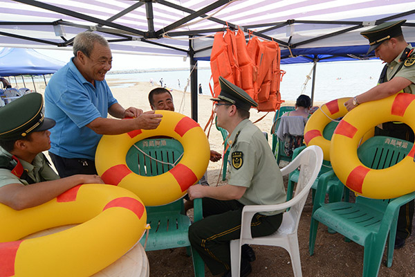 日前,錦州公安邊防支隊(duì)王家窩鋪邊防派出所積極主動(dòng)警務(wù)前移,設(shè)置浴場(chǎng)報(bào)警點(diǎn)和救助點(diǎn),有效提高見(jiàn)警率,第一時(shí)間為游客提供幫助。