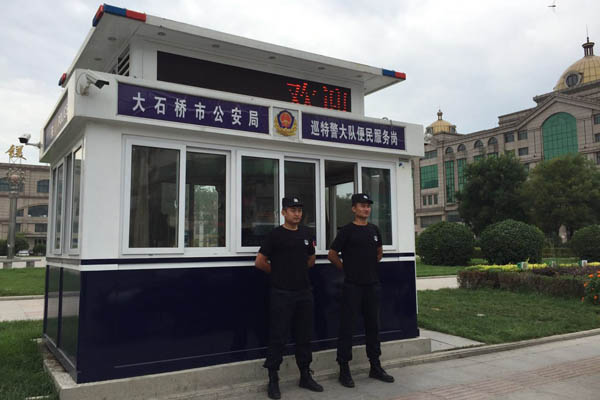 大石橋市的車站、商業(yè)區(qū)、學校等重點區(qū)域都有這樣的警亭,警亭人員由一名民警和輔警組成,在為人們提供便民服務的同時,隨時準備出警