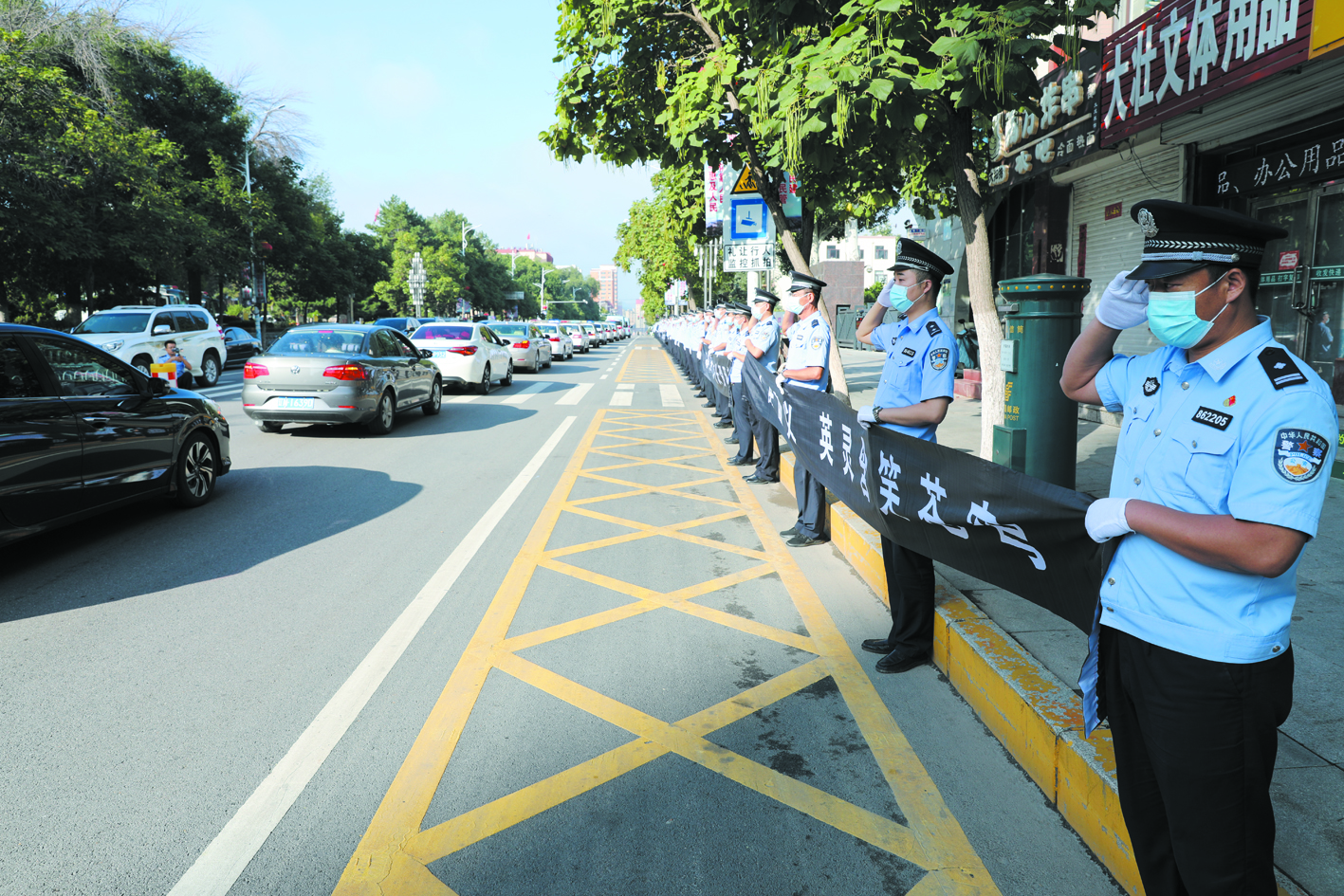 “赤膽忠心?鐵血柔情?揮淚送別魯春軍同志”“戰(zhàn)友魯春軍同志一路走好”……8月13日7時30分,在警車列隊護送下,載有魯春軍遺體的靈車從其家中緩緩駛向北票市殯儀館,自發(fā)趕來的民警們在道路旁手持挽聯(lián)肅穆而立,依次敬禮送魯春軍最后一程?;貞浧鹋c魯春軍共事的點點滴滴,北票市公安局蒙古營派出所民警董岳斌潸然淚下,“說好的下次我替你值班,你這讓我怎么還?”