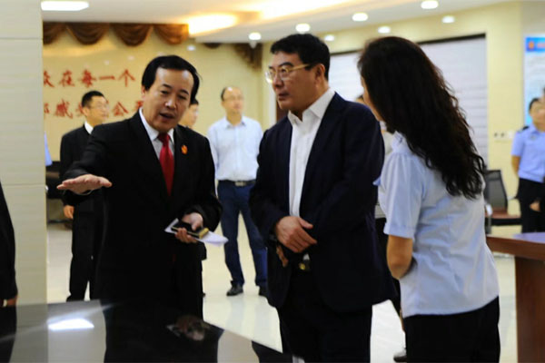 9月26日,阜新市委常委、政法委書記付志宏(中)在阜新市中級人民法院調(diào)研