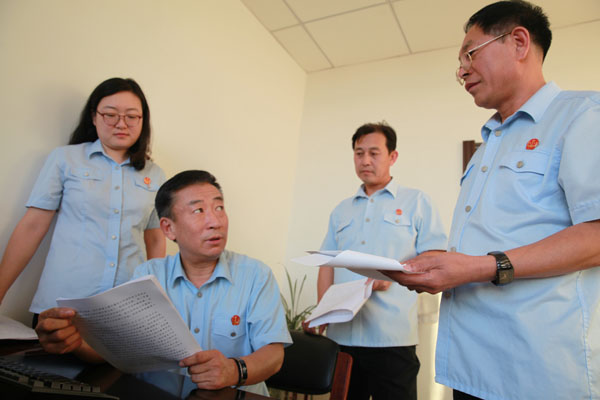 9月28日,朝陽市中級人民法院刑事審判第二庭法官們在探討案情