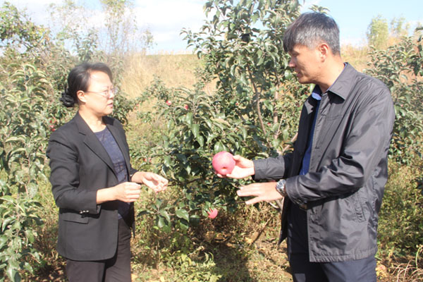 綏中縣法院黨組書記、院長曹海英(左)正在交流扶貧工作