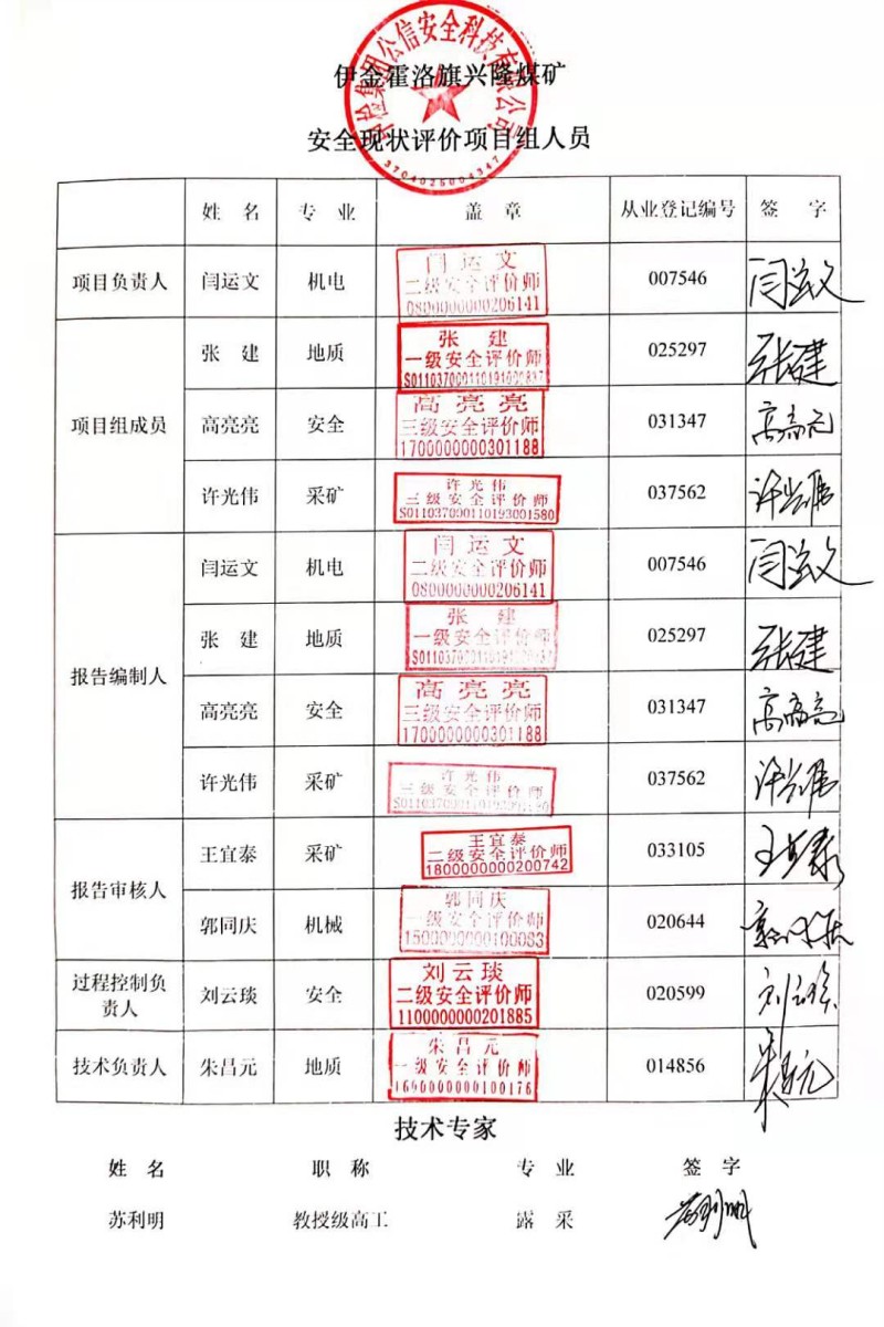 | 參與安全評價工作的注冊安全工程師: 閆運(yùn)文 高亮亮 |