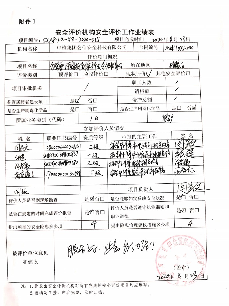 | 現(xiàn)場開展安全評價工作的人員、時間及主要任務(wù): 張 建 閆運(yùn)文 許光偉 高亮亮 于2020年7月9日到現(xiàn)場進(jìn)行調(diào)查、搜集資料,進(jìn)行現(xiàn)場評價。 于2020年8月2日到現(xiàn)場對評價時存在的問題進(jìn)行了復(fù)查。 |