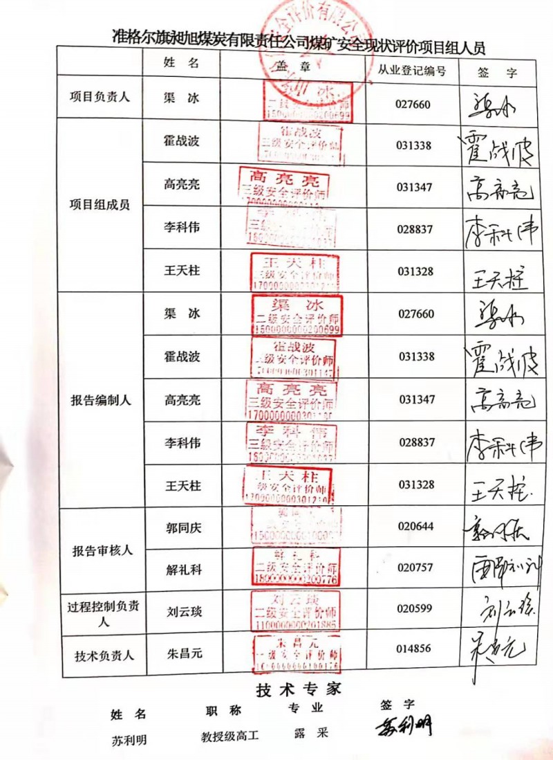| 評價項目名稱 | 準(zhǔn)格爾旗昶旭煤炭有限責(zé)任公司煤礦安全現(xiàn)狀評價報告 | ||||||