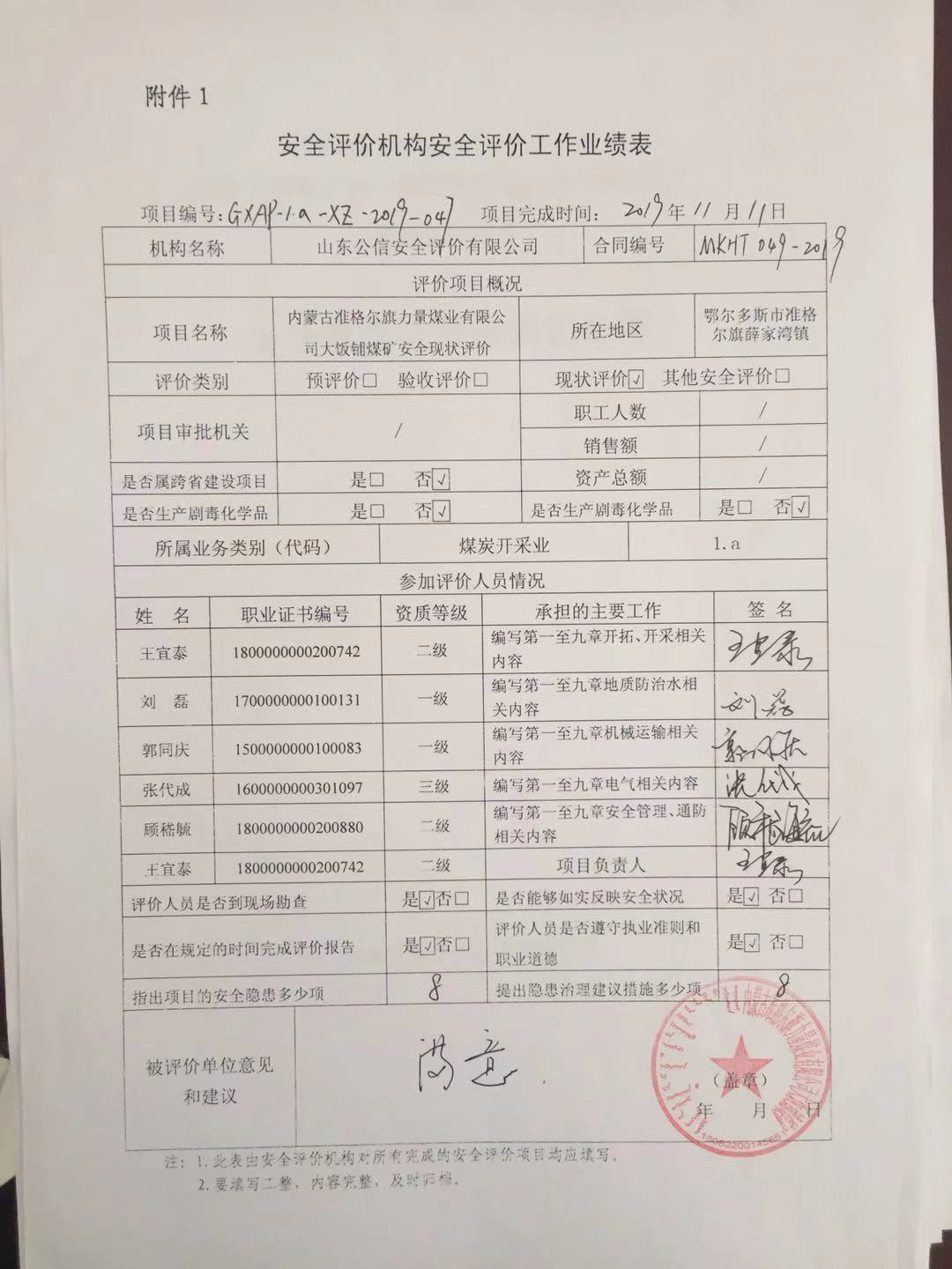 | 評價項(xiàng)目名稱 | 內(nèi)蒙古準(zhǔn)格爾旗力量煤業(yè)有限公司大飯鋪煤礦安全現(xiàn)狀評價報告 | ||||||