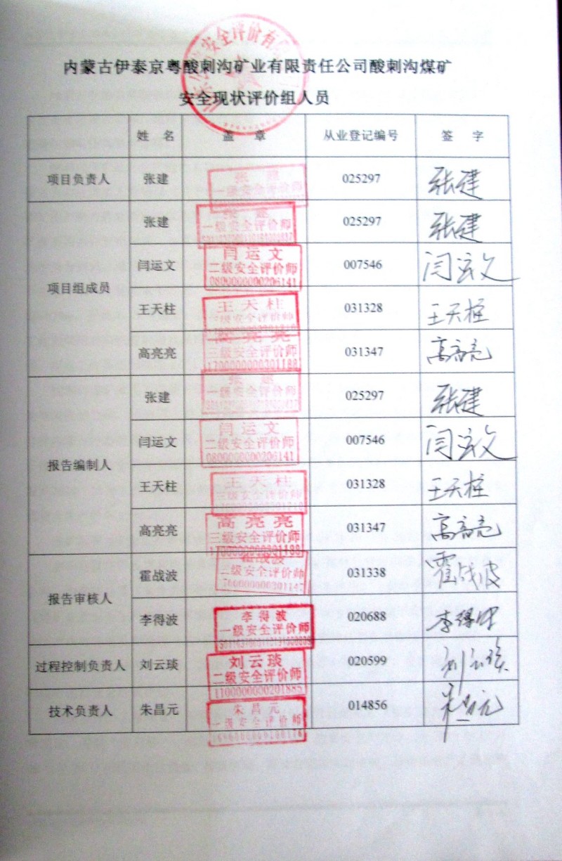 | 評價項目名稱 | 內(nèi)蒙古伊泰京粵酸刺溝礦業(yè)有限責(zé)任公司酸刺溝煤礦安全現(xiàn)狀評價報告 | ||||||