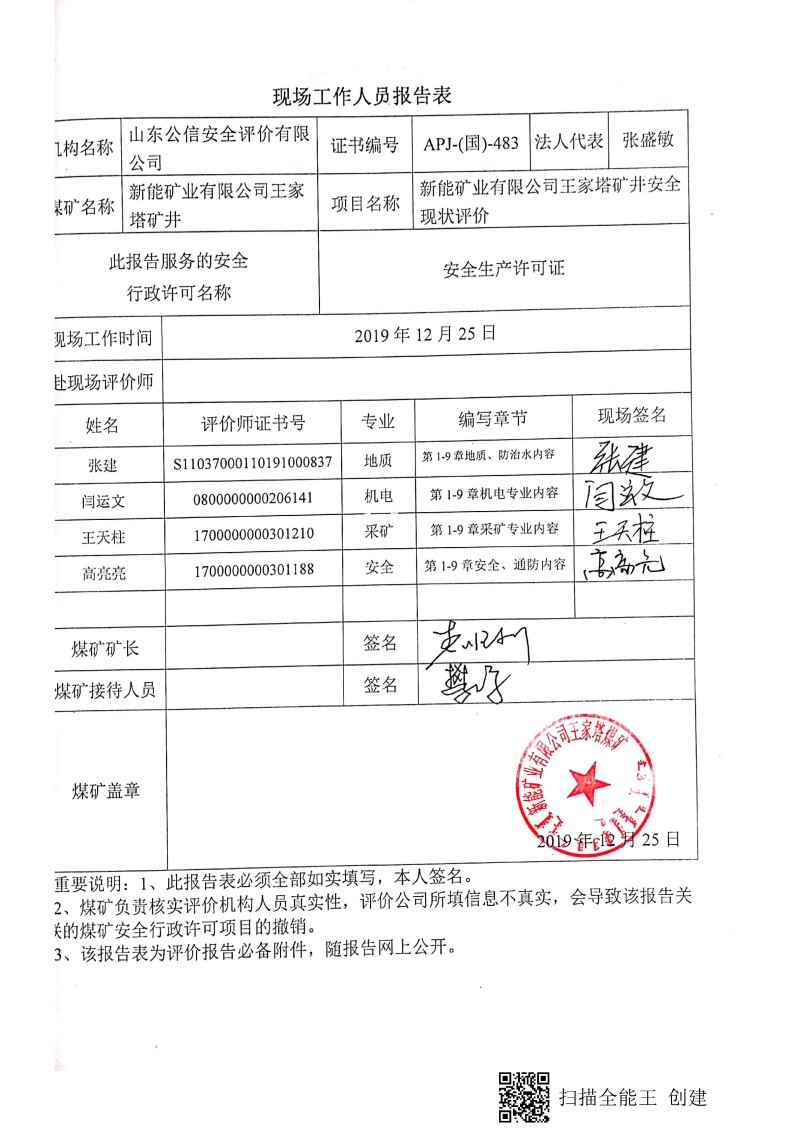 | 參與安全評價(jià)工作的安全評價(jià)師: 張 建 閆運(yùn)文 王天柱 高亮亮 |