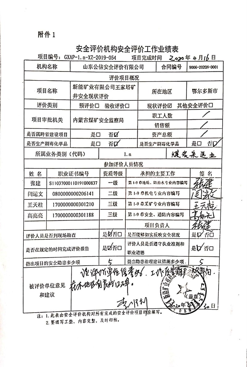 | 評價(jià)項(xiàng)目名稱 | 新能礦業(yè)有限公司王家塔礦井安全現(xiàn)狀評價(jià) | ||||||