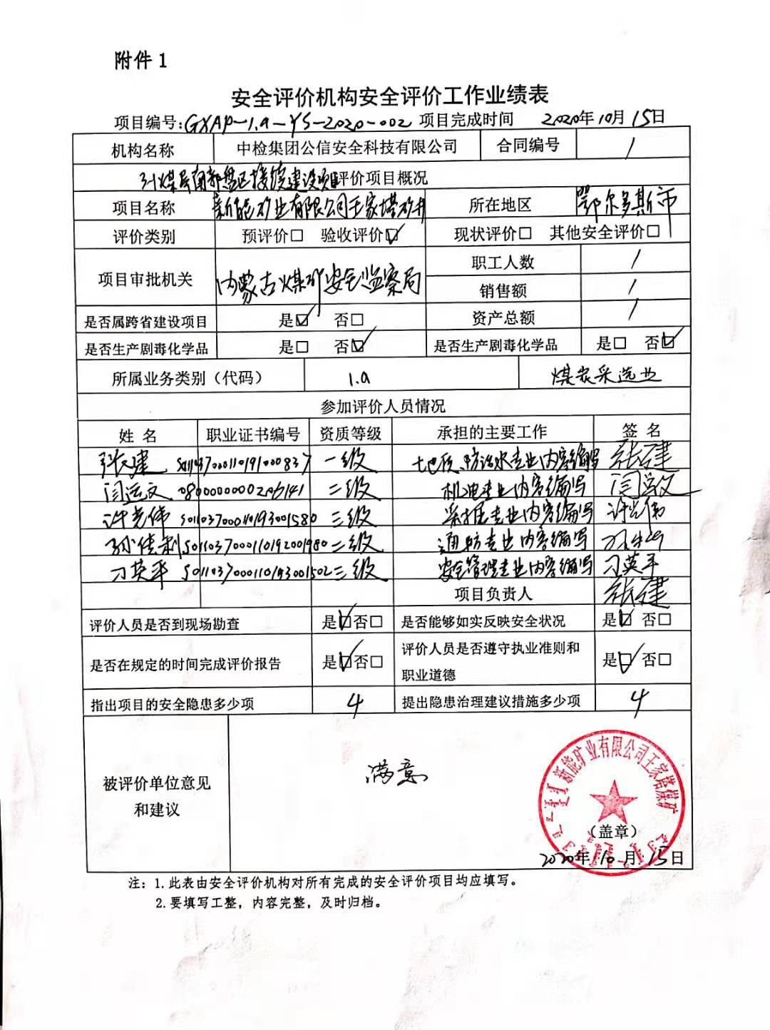 | 現(xiàn)場(chǎng)開展安全評(píng)價(jià)工作的人員、時(shí)間及主要任務(wù): 張建、閆運(yùn)文、許光偉、孫傳利、刁英平于2020年10月7日到現(xiàn)場(chǎng)進(jìn)行調(diào)查、搜集資料,進(jìn)行現(xiàn)場(chǎng)評(píng)價(jià)。 |