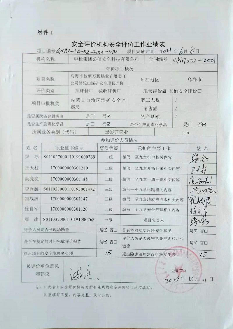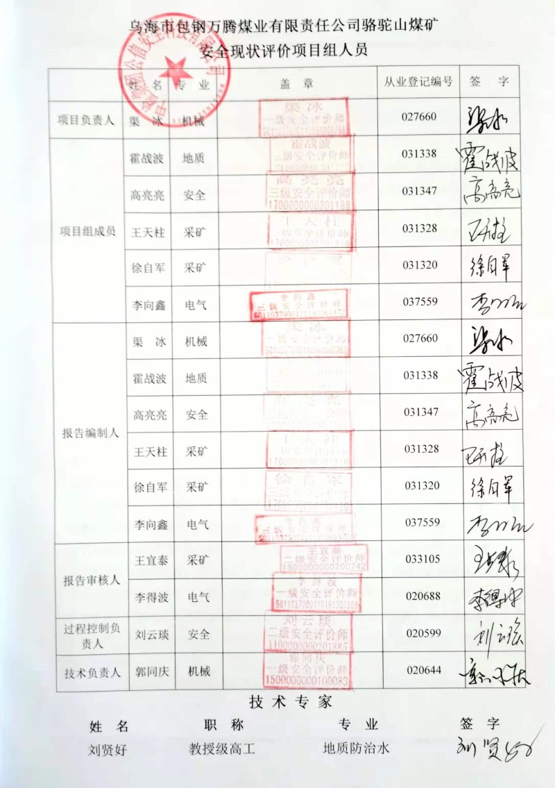 | 評(píng)價(jià)項(xiàng)目名稱 | 烏海市包鋼萬騰煤業(yè)有限責(zé)任公司駱駝山煤礦安全現(xiàn)狀評(píng)價(jià)報(bào)告 | ||||||