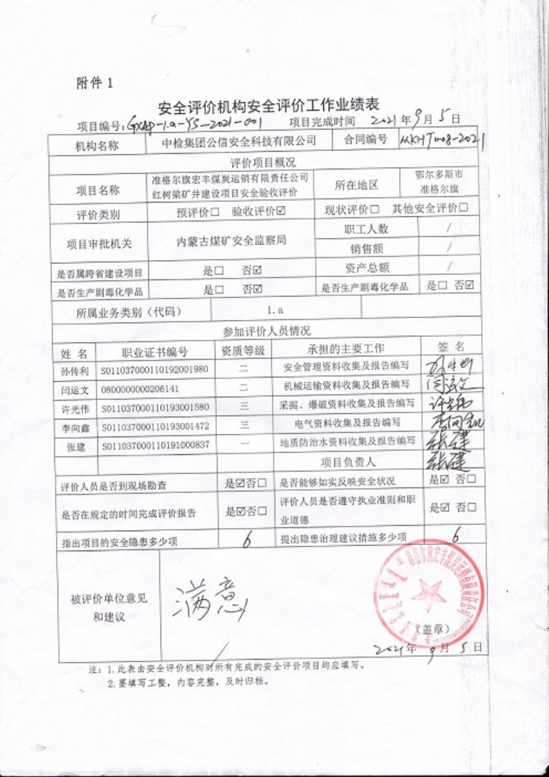 評(píng)價(jià)項(xiàng)目名稱 準(zhǔn)格爾旗宏豐煤炭運(yùn)銷有限責(zé)任公司紅樹(shù)梁礦井建設(shè)項(xiàng)目安全驗(yàn)收評(píng)價(jià)報(bào)告