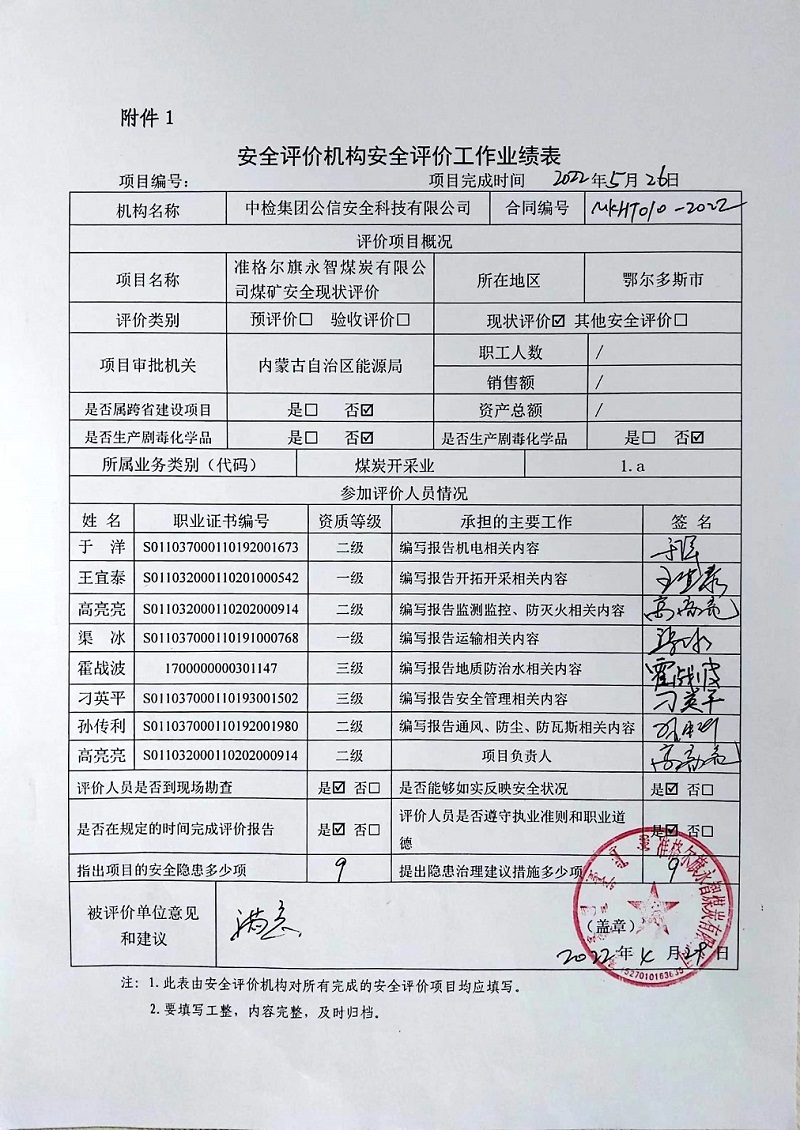 評(píng)價(jià)項(xiàng)目名稱 準(zhǔn)格爾旗永智煤炭有限公司煤礦安全現(xiàn)狀評(píng)價(jià)報(bào)告